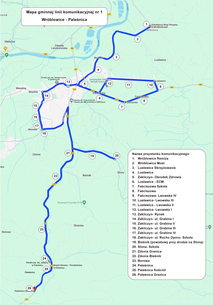 Urząd Miejski w Zakliczynie informuje, że od dnia 12 stycznia 2026 r. wykonywane będą gminne przewozy pasażerskie w publicznym transporcie zbiorowym na terenie Gminy Zakliczyn na dwóch liniach komunikacyjnych: