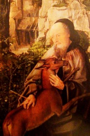 Święty opat Idzi z Saint-Gilles urodził się około 640 roku w Atenach, a zmarł 1 września 721 roku. Egidyusz, (Idzi – to spolonizowane imię świętego), pochodził z zamożnej rodziny, a od najmłodszych lat wyróżniał się nieprzeciętną inteligencją oraz pobożnością. Rodzice dali mu wszechstronne wykształcenie i nauczyli miłości do Boga. Następnie zaszył się w pustelni w Attyce. Niedługo cieszył się spokojem i samotnością. Po śmierci rodziców rozdał majątek potrzebującym i przez Pireus popłynął statkiem do Marsylii. Początkowo zamieszkał u bogatej wdowy Teokryty, pochodzącej tak jak on z Grecji. Uzdrowił jej chorą od 3 lat córkę. Później przyłączył się do duchowieństwa Arles. Zatęsknił jednak za samotnością. Pewnego dnia przeprawił się więc na drugi brzeg Rodanu. Spotkał tam pustelnika Weredomusa. Zamieszkał z nim w grocie nad brzegiem rzeki Gard. Towarzysz Idziego zmarł po niedługim czasie. Cuda, które działy się za przyczyną św. Idziego dały mu taki rozgłos, że przybywało do niego wielu ludzi. W związku z tym, po pewnym czasie postanowił opuścić samotnię i On sam zaczął przemierzać pobliskie tereny, ale i to powodowało, że zdaniem świętego był otaczany nadmierną czcią, przez co schronił się w pustelni nad rzeką Rodan.