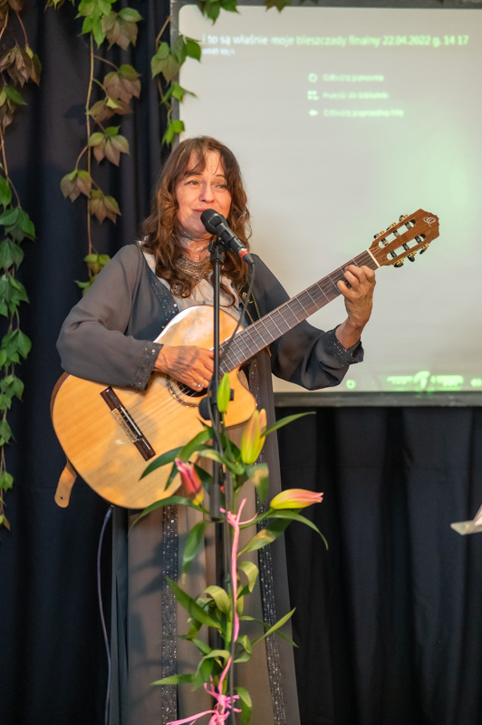 „…Anioły na poddaszu w znanej autorskiej galerii Poddasze cenionego artysty fotografika i…harlejowca Stanisława Kusiaka, zlokalizowanej właśnie na poddaszu Zakliczyńskiego Centrum Kultury czyli w miejscowym Ratuszu… Ten anielski desant zdarzył się w ubiegły piątek 13 października o godz.19, gromadząc znakomite grono gości i koneserów artystycznej fotografii. A bohaterką tego klimatycznego wieczornego wernisażu, który później przedłużył się aż do północy, była Inka Wieczeńska, jedna z ikon bieszczadzkiej kultury, zwana przez przyjaciół “Sosenką” lub “Lisiczką” – prawdziwa lisia kita przyczepiona do jej bieszczadzko kowbojskiego kapelusza to jej znak firmowy, artystka nie banalna, prawdziwa i charyzmatyczna, która przywiezioną do Zakliczyna wystawę nazwała “…a ja wybieram Bieszczady” a o swojej twórczości zwykła mawiać – “Fotografia to taki teatr”. Nie bez kozery, bowiem jej fotograficzne malarstwo to taki improwizowany teatr, z którym jej zawodowe życie mocno się przeplata, m.in. za sprawą Teatru Nie Teraz z którym współpracuje i, co mocno podkreśla, się przyjaźni, by wspomnieć chociażby głośny spektakl rzeszowskiego teatru “Wyżej niż połonina”, który gościnnie wyreżyserował jego twórca i dyrektor Tomasz A. Żak. Zaś muzycznie zakliczyński wernisaż oprawiła, ceniona krakowska pieśniarka i pedagog Maria Lamers. To był naprawdę, wbrew piątkowej “klątwie”, szczęśliwy i dobry dzień! Taki bieszczadzki…Podczas wernisażu wystawy Indze towarzyszyła Maria Lamers. Maria Lamers jest absolwentką krakowskiej Akademii Sztuk Pięknych i Szkoły Muzycznej im. F. Chopina w Warszawie. Poetka, kompozytorka, malarka, wokalistka, bard – śpiewa autorskie piosenki, a także teksty m.in. Bułata Okudżawy, Czesława Miłosza, Sergiusza Jesienina oraz poetów bieszczadzkich Mirosława Welza i Wojciecha Maciaszka. Jest laureatką I nagród ogólnopolskiego festiwalu autorskiej piosenki satyrycznej w Warszawie oraz Festiwalu Piosenki Turystycznej „Bazuna”. Artystka Piwnicy pod Baranami i kabaretu Loch Camelot. Obecnie współtworzy i występuje w Piwnicy Św. Norberta w Krakowie, koncertując po całym kraju. Jest nauczycielką śpiewu w Krakowskiej Państwowej Szkole Teatralnej oraz w Krakowskiej szkole jazzu i muzyki rozrywkowej. Maria Lamers wielokrotnie również gościła w Sztokholmskim Salonie Poezji, w tym z recitalem wierszy Czesława Miłosza we własnej oprawie muzycznej i interpretacji….”