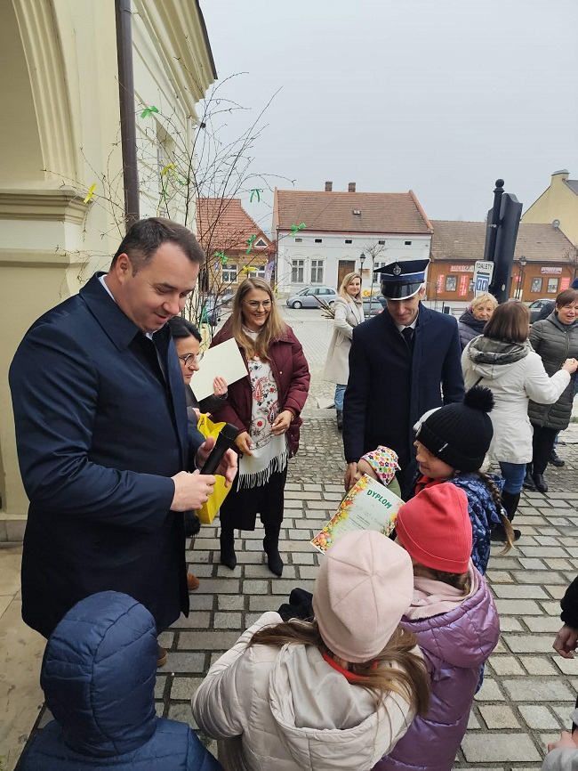 Oceny prac dokonało jury w składzie: Monika Kulak (przewodnicząca), Agnieszka Dudzik (sekretarz) oraz Burmistrz Dawid Chrobak. Laureaci konkursu otrzymali vouchery do księgarni E-Milo o wartości: 400 zł (I miejsce), 300 zł (II miejsce), 200 zł (III miejsce), a także upominki rzeczowe: Anioły, komplet ściereczek kuchennych oraz figurkę baranka wielkanocnego. Każdy uczestnik otrzymał pamiątkowy dyplom, a dodatkowo wręczono 5 wyróżniających dyplomów za udział jako wyraz uznania za podtrzymywanie lokalnej tradycji.