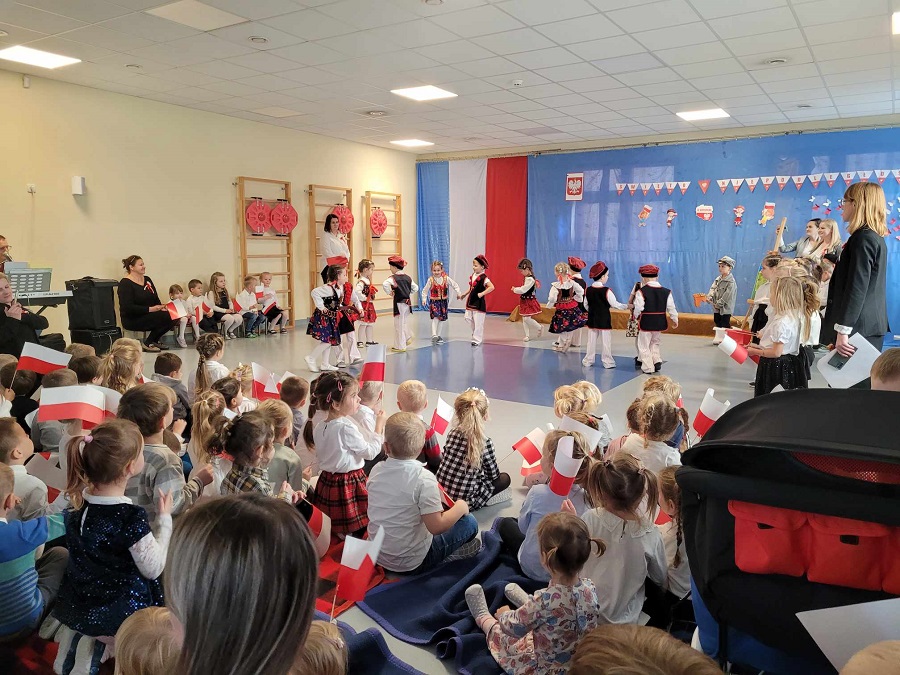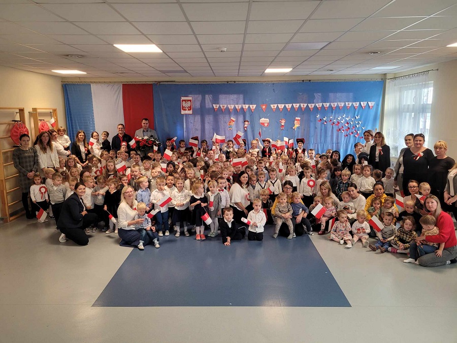 W przedszkolu od najmłodszych lat dzieci uczą się patriotyzmu, przywiązania do kraju ojczystego oraz kształtują pozytywne postawy i uczucia patriotyczne. Dzień Niepodległości był radosnym dniem w naszym przedszkolu i mamy nadzieję, że zapadnie on w pamięci naszych „Małych Polaków”.