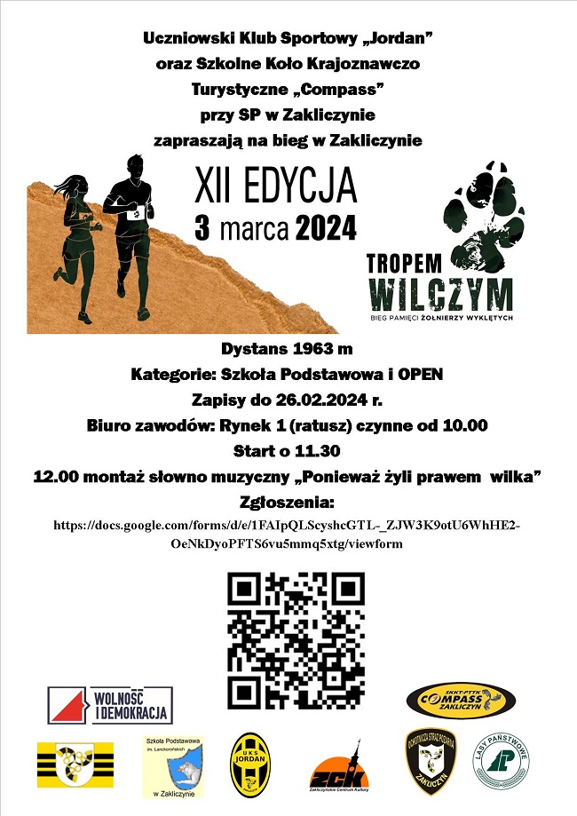 Regulamin Biegu Pamięci Żołnierzy Wyklętych „Tropem Wilczym” – Zakliczyn 2024 organizowanego w ramach Narodowego Dnia Pamięci Żołnierzy Wyklętych