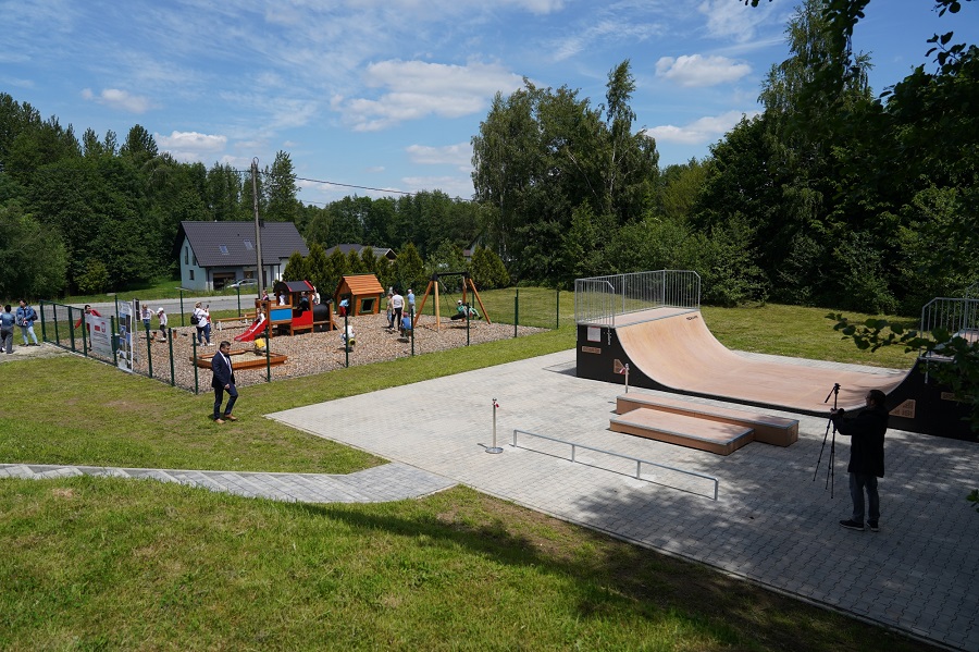 Prace związane z urządzeniem placu zabaw objęły m.in. zakup elementów zabawkowych i innych urządzeń (grindbox), wykonanie minirampy systemowej o konstrukcji kompozytowo-drewnianej z balustradami oraz ogrodzenia.