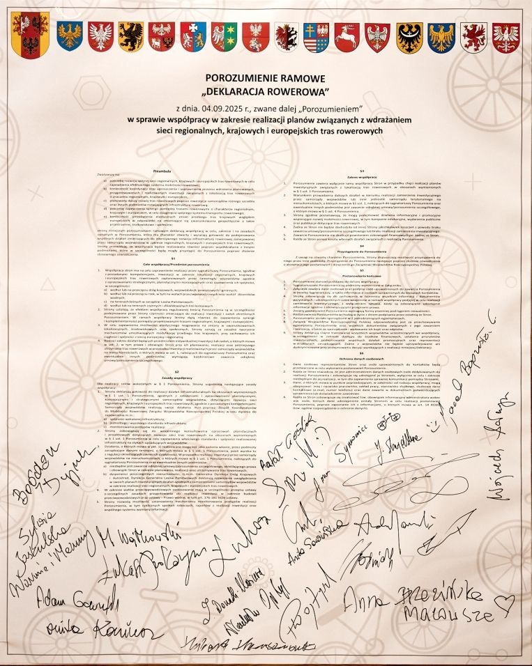 Małopolska od lat konsekwentnie buduje nowoczesną infrastrukturę rowerową, która stała się wzorem dla innych województw w Polsce. Podpisana dziś Deklaracja Rowerowa daje szansę, by nasze doświadczenia mogły zostać wykorzystane w skali ogólnopolskiej, a trasy Małopolski stały się częścią jednolitej sieci europejskiej — podkreśla marszałek województwa małopolskiego Łukasz Smółka.