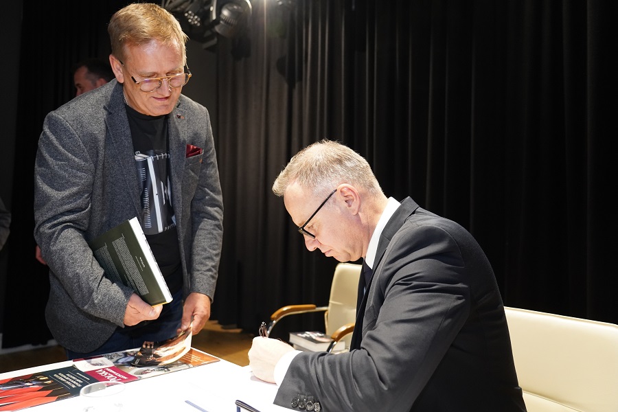 Prezydent Andrzej Duda odpowiedział na pytania dotyczące głównie sytuacji międzynarodowej, w tym zagrożeń ze strony Federacji Rosyjskiej. Długa kolejka ustawiła się później do autografów i dedykacji na książce o życiu i prezydenturze Andrzeja Dudy.