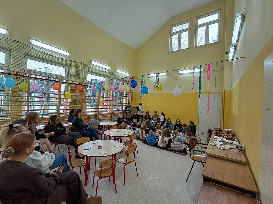 Dzięki projektowi powstała nowa Strefa Relaksu w świetlicy szkolnej, wzbogacona o pomoce sensoryczne, materiały plastyczne i przestrzeń do wspólnej zabawy. Przeprowadziliśmy także działania integrujące różne pokolenia – przekazaliśmy ręcznie wykonane prace Seniorom z Centrum Aktywizacji i Opieki Seniorów w Kończyskach oraz przygotowaliśmy sensoryczne zabawy dla przedszkolaków z SOSW w Złotej. Dwudziestego siódmego listopada na sali gimnastycznej naszej szkoły odbyło się Sensoryczne Spotkanie Integracyjne- okazja do bycia razem, budowania relacji a także do podsumowania naszego projektu. Wolontariusze, świetliczaki, a także przemili Goście z naszej lokalnej społeczności mogli wziąć udział w różnego rodzaju aktywnościach takich jak wspólne słuchanie przygotowanego przez wolontariuszy audiobooka wybranych wierszy Jana Brzechwy, rodzinne dekorowanie pierników czy zabawy taneczno-ruchowe. Uczestnicy spotkania mogli posłuchać też krótkiego sprawozdania z realizacji projektu, a także obejrzeć wystawę prezentującą artystyczne poczynania dzieci zaangażowanych w projekt.