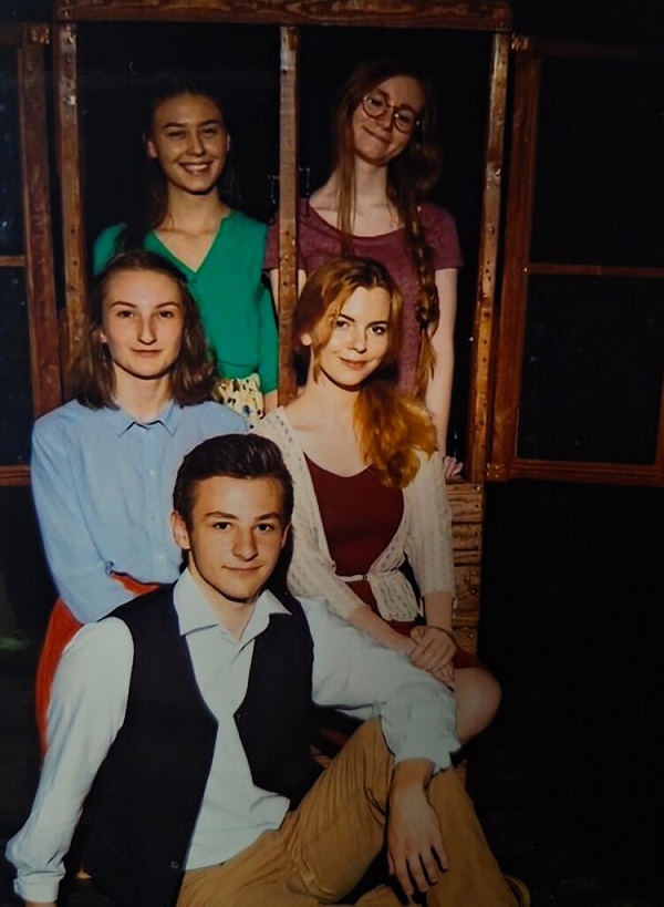 Jako nowa osoba w zespole tego konkretnego spektaklu, naturalnym było dla mnie dołączenie również do szkolnego koła teatralnego, które z czasem przekształciło się w stały, młodzieżowy zespół. Tworzyli go: Aleksandra Dziąćko, Wiktoria Wątroba, Julia Jachym, Dominika Kawa, Bartłomiej Cup i Kamil Giebał. Początkowo działały z nami również Weronika Ferdynus i Agnieszka Czarnik (plus kilka innych osób, ale bardzo krótko). Była to grupa niezwykle różnorodna pod względem charakterów – prawdziwy wachlarz osobowości. Z niektórymi wciąż mam kontakt, najczęściej z Bartkiem.