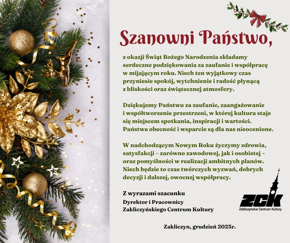 Życzenia świąteczne składa Zakliczyńskie Centrum Kultury