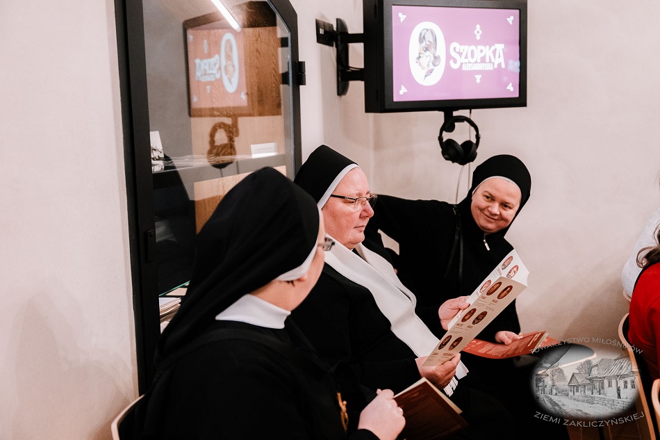 Spektakl poprzedziła projekcja filmu tj. rozmowy ojca i syna, Pawła i Antoniego Szymanowiczów, która przybliżyła widzom historyczne okoliczności powstania Szopki, wyjaśniła niektóre trudne dziś pojęcia oraz genezę samego przedstawienia. Materiał filmowy powstał dzięki pracy niezastąpionej Katarzyny Kokoszy. Nad stroną organizacyjno-administracyjną, jak zawsze, czuwała skarbniczka Towarzystwa Maria Grzegorczyk.