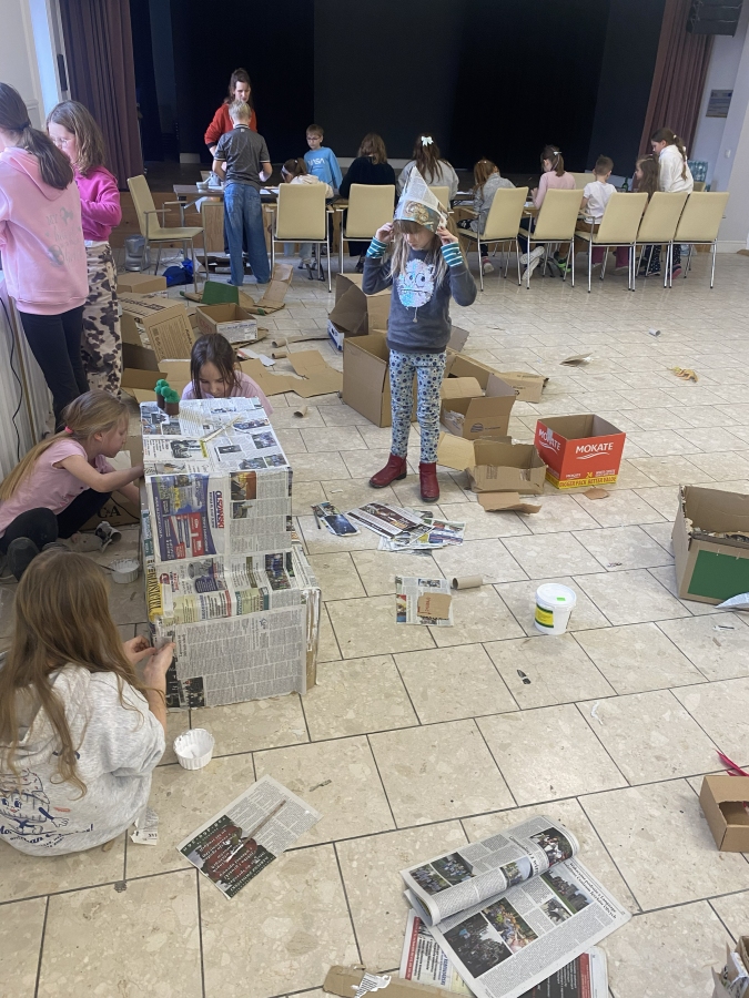 Tego dnia uczestnicy wydarzenia dokończyli zmagania w „Igrzyskach zakliczyńskich” poprowadzonych przez Ewelinę Siepielę, a pod okiem znakomitej artystki Patrycji Zelek najpierw odbyli warsztaty z tworzenia naturalnych farb, a potem zajęli się konstruowaniem kartonowych budowli, w tym rzecz jasna siedziby Zakliczyńskiego Centrum Kultury – ratusza.