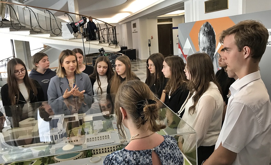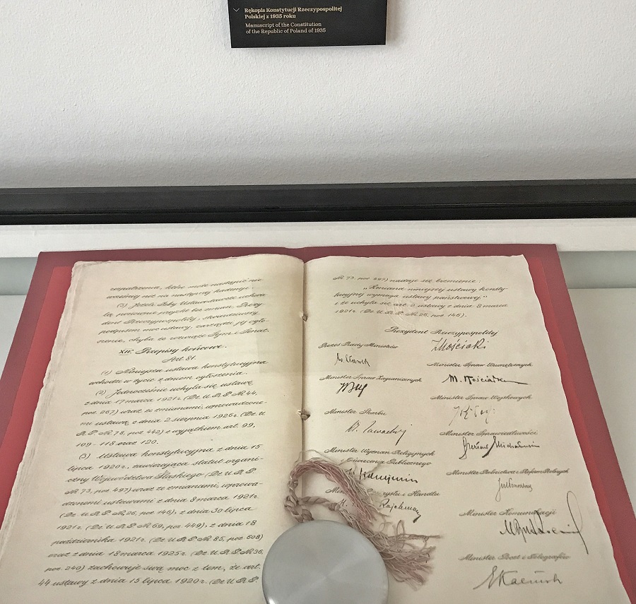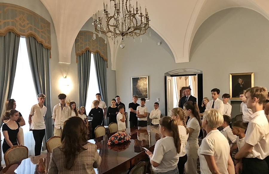 Pierwszym punktem zwiedzania był Pałac Prezydencki, który od trzech dekad pełni rolę siedziby Prezydenta Rzeczypospolitej. Oglądaliśmy najpiękniejsze wnętrza pałacowe (Salę Białą, Salę Błękitną, Salę Rokoko, Salę im. Lecha Kaczyńskiego, Salę Chorągwianą, Salę Orderu Białego, Salę Kolumnową, Kaplicę Prezydencką i pomieszczenie, w którym znajduje się Okrągły Stół, przy którym toczyły się obrady plenarne w 1989 r.). Niezwykłość tego miejsca poznaliśmy dzięki rzeczowej i kompetentnej przewodniczce, która w interesujący sposób opowiedziała nam historię pałacu oraz współczesne przeznaczenie najważniejszych przestrzeni, w których odbywają się uroczyste spotkania, ważne rozmowy międzynarodowe i negocjacje na najwyższym szczeblu.