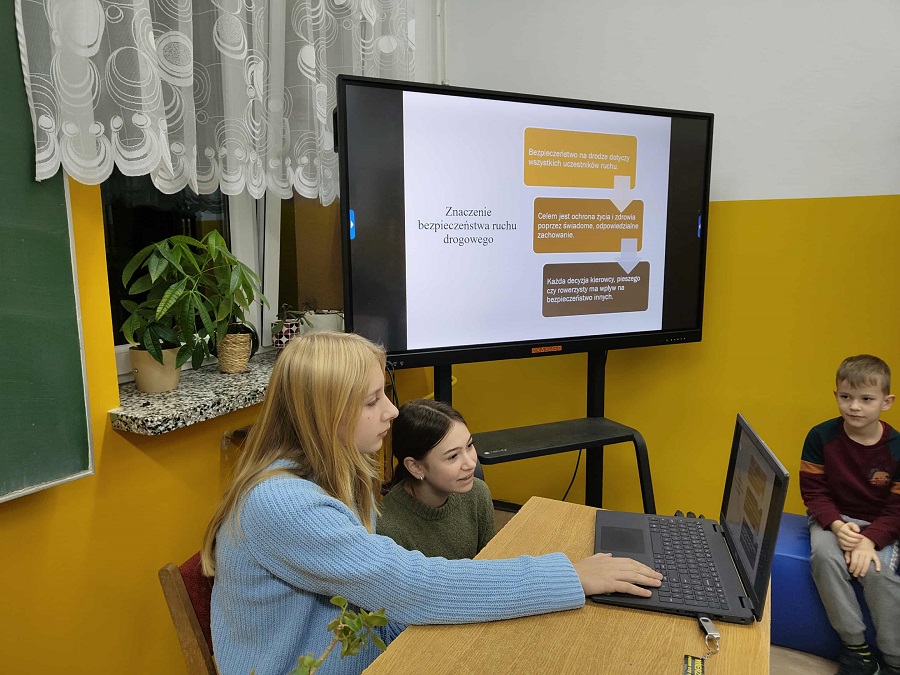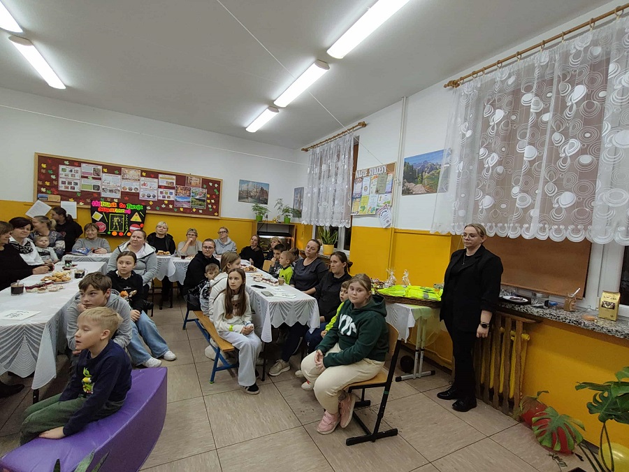 Uczniowie przygotowali specjalne prezentacje dla mieszkańców oraz pań z Koła Gospodyń Wiejskich, w których podkreślili, jak ważne jest bycie widocznym na drodze. Podczas spotkania wręczono zebranym gościom kamizelki odblaskowe, zachęcając do ich codziennego używania.