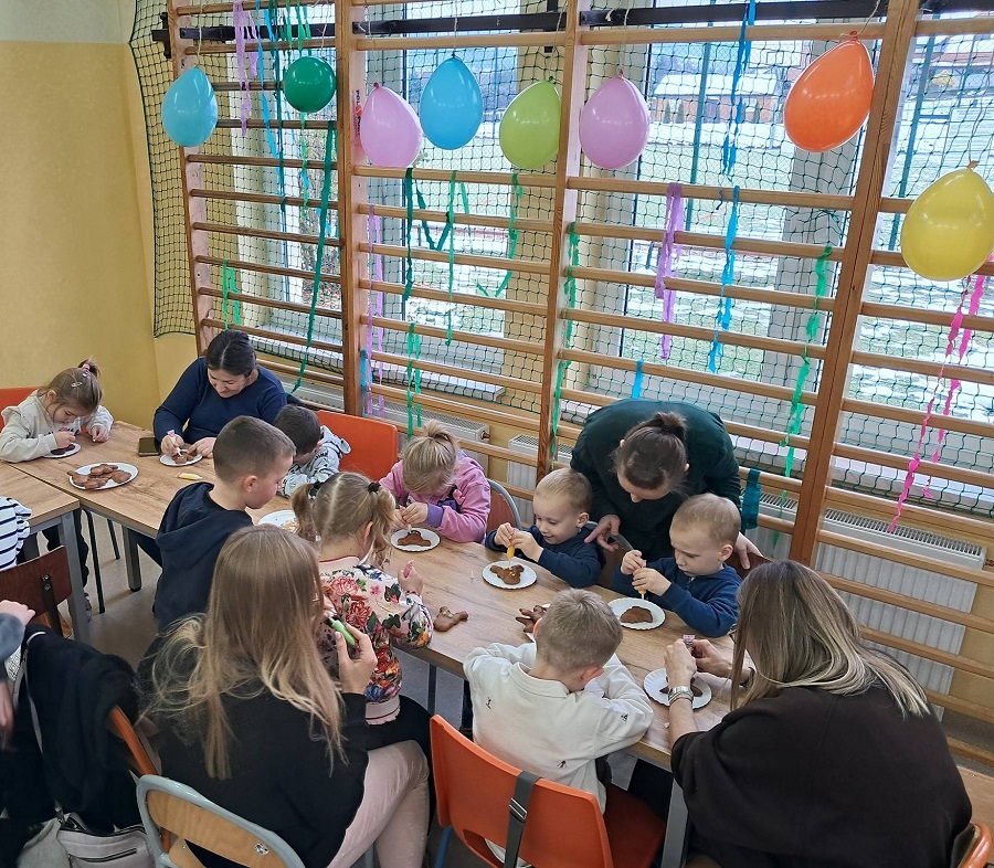 Dzięki projektowi powstała nowa Strefa Relaksu w świetlicy szkolnej, wzbogacona o pomoce sensoryczne, materiały plastyczne i przestrzeń do wspólnej zabawy. Przeprowadziliśmy także działania integrujące różne pokolenia – przekazaliśmy ręcznie wykonane prace Seniorom z Centrum Aktywizacji i Opieki Seniorów w Kończyskach oraz przygotowaliśmy sensoryczne zabawy dla przedszkolaków z SOSW w Złotej. Dwudziestego siódmego listopada na sali gimnastycznej naszej szkoły odbyło się Sensoryczne Spotkanie Integracyjne- okazja do bycia razem, budowania relacji a także do podsumowania naszego projektu. Wolontariusze, świetliczaki, a także przemili Goście z naszej lokalnej społeczności mogli wziąć udział w różnego rodzaju aktywnościach takich jak wspólne słuchanie przygotowanego przez wolontariuszy audiobooka wybranych wierszy Jana Brzechwy, rodzinne dekorowanie pierników czy zabawy taneczno-ruchowe. Uczestnicy spotkania mogli posłuchać też krótkiego sprawozdania z realizacji projektu, a także obejrzeć wystawę prezentującą artystyczne poczynania dzieci zaangażowanych w projekt.