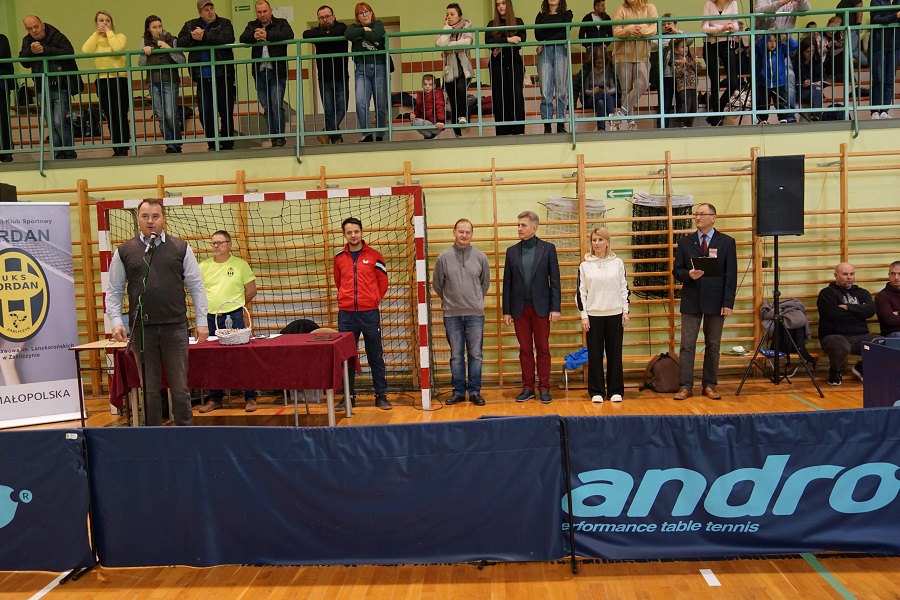 O godzinie 9:15 nastąpiło uroczyste wejście zawodników na płytę hali sportowej. Spotkało się ono z aplauzem zebranej publiczności. Młodych zawodników i ich opiekunów oraz zaproszonych gości powitał Prezes UKS „Jordan”, pan Piotr Poręba. Głos zabrał również Burmistrz Miasta i Gminy Zakliczyn pan Dawid Chrobak, który życzył zawodnikom sukcesu w zawodach i wyraził ogromne zadowolenie z aktywności sportowej wśród dzieci i młodzieży. Kończąc oficjalne przemówienia, sędzia pan Stanisław Dąbroś przedstawił harmonogram i regulamin rozgrywek.